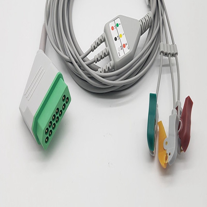 2การจัดตั้งสายไฟฟ้า: สายไฟฟ้า ECG ได้ถูกออกแบบมาเพื่อรองรับการจัดตั้งสายไฟฟ้าที่แตกต่างกันขึ้นอยู่กับจํานวนสายไฟฟ้าที่ต้องการเพื่อการติดตามหรือวินิจฉัยการตั้งแบบนําทั่วไปประกอบด้วย 3-นําคาเบิ้ล ECG 5 สาย, 10 สาย, หรือ 12 สาย แต่ละแบบตรงกับการวางอิเล็กตรอดเฉพาะเพื่อจับภาพที่แตกต่างกันของกิจกรรมไฟฟ้าของหัวใจ
