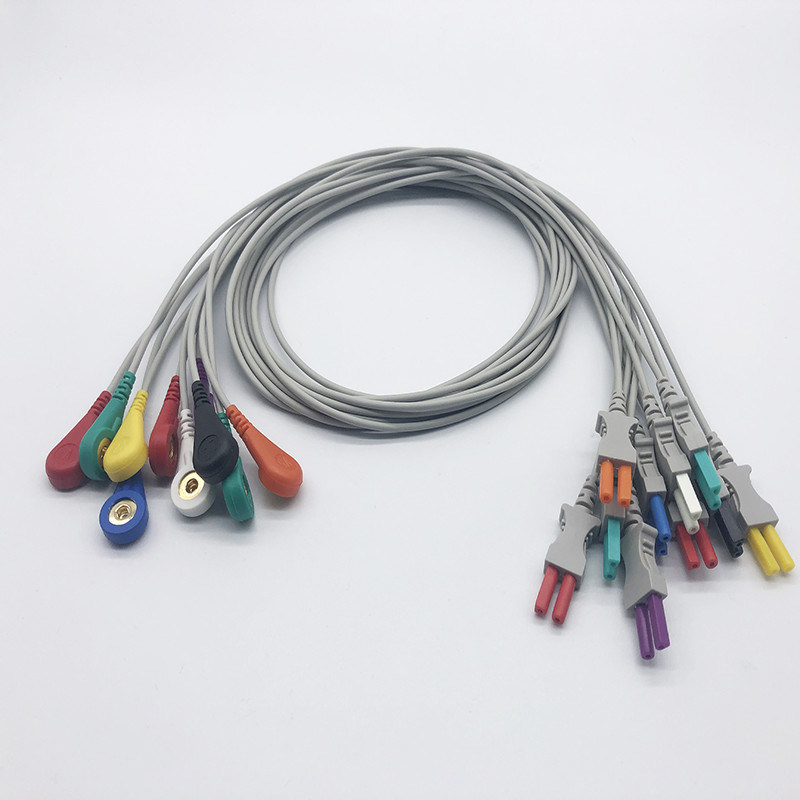 สายไฟฟ้า ECG อาจแตกต่างกันในการออกแบบและการตั้งค่าขึ้นอยู่กับระบบ ECG ที่ใช้โดยเฉพาะ. สายไฟฟ้า ECG บางสายมีรหัสสีที่จะสอดคล้องกับการวางนําเฉพาะอย่างยิ่ง เช่น สายไฟฟ้าขา (I, II,III) และสายนําก่อน (V1-V6)สายเคเบิลถูกออกแบบมาเพื่อให้การส่งสัญญาณแม่นยํา และลดการขัดแย้งหรืออุปกรณ์ศิลปะน้อยที่สุดระหว่างการบันทึก ECG