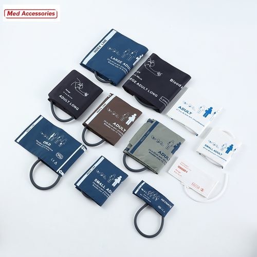 ผ้าพันคอ NIBP สําหรับผู้ใหญ่ ใช้ได้หลายครั้ง ความดันโลหิต เส้นผ้าพันคอ PU หลอดเดียว/สองลําพร้อมถุง ขนาด 33-47 ซม.