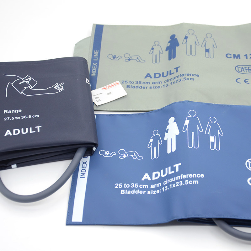 ผ้าพันคอ NIBP สําหรับผู้ใหญ่ ใช้ได้หลายครั้ง ความดันโลหิต เส้นผ้าพันคอ PU หลอดเดียว/สองลํา พร้อมกระเป๋า ขนาด 33-47 ซม.