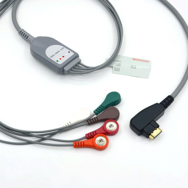 สายไฟฟ้า EKG และอุปกรณ์เสริม: สายไฟฟ้า EKG และอุปกรณ์เสริมถูกใช้สําหรับการตรวจหัวใจไฟฟ้า โดยให้การเชื่อมต่อระหว่างอิเล็กตรอด EKG และเครื่อง EKG หรือจอ